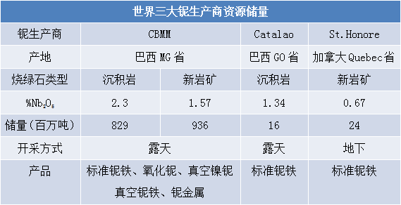 就公司來看,巴西的CBMM(巴西冶礦公司)、英國的Anglo American plc(英美資源集團(tuán))以及加拿大的Iamgold corporation三家公司鈮產(chǎn)量約占全球產(chǎn)量的95%。