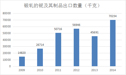 自2012年鉭鈮精礦歷史性的達(dá)到100萬/噸后,價格開始逐年下降,2014年降至歷史低點(diǎn)46萬元/噸,2015年稍有回暖,一噸的價格在65萬元左右。經(jīng)濟(jì)下行的壓力長期存在,我國對鈮資源的需求將維持在1.6萬噸/年的水平。