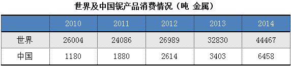 我國是世界上最大的鈮資源消費(fèi)國,2015年消費(fèi)鈮資源約1.866萬噸。受宏觀經(jīng)濟(jì)增速放緩和鋼鐵行業(yè)產(chǎn)能過剩影響,鋼鐵領(lǐng)域的消費(fèi)在不斷下降,2015年鋼鐵領(lǐng)域消費(fèi)的鈮鐵為1.613萬噸,占國內(nèi)消費(fèi)總量的86.4%。